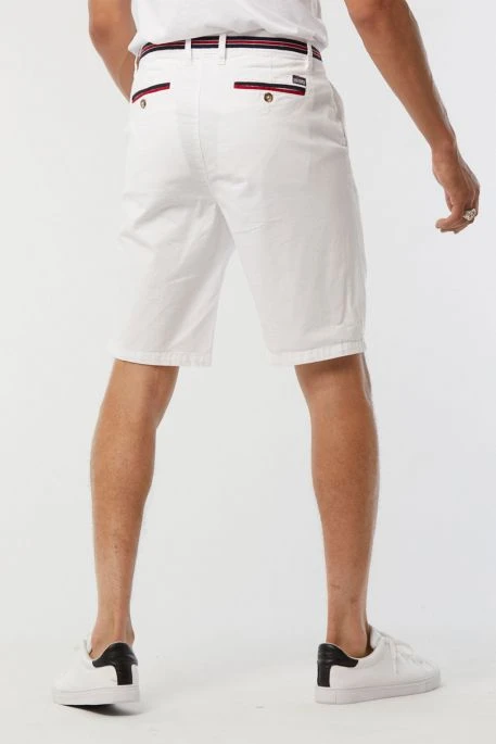 Bermuda Lee Cooper pour homme, bermuda blanc, bermuda forme chino avec galon ceinture, poche dos.