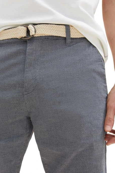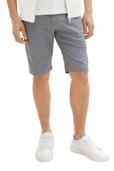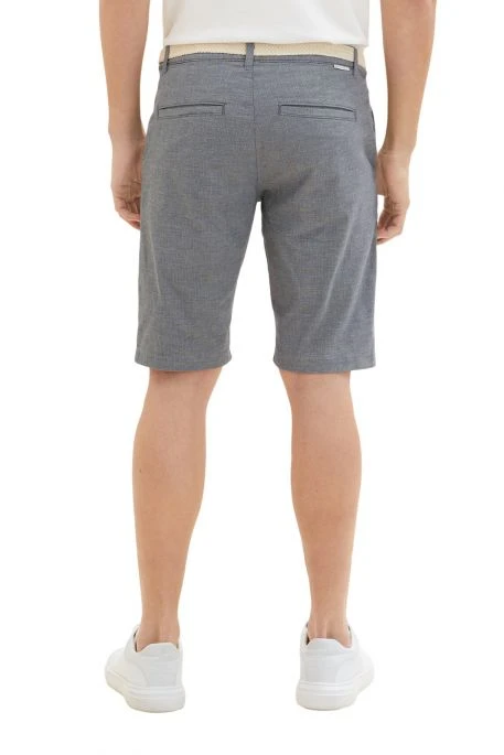 Bermuda Tom Tailor pour homme, bermuda avec bouton et fermeture éclair confectionné en coton doux, la coupe est une coupe Chino slim fit : taille basse, jambe slim, coupe slim avec ceinture intégrée, poches latérales en biais.