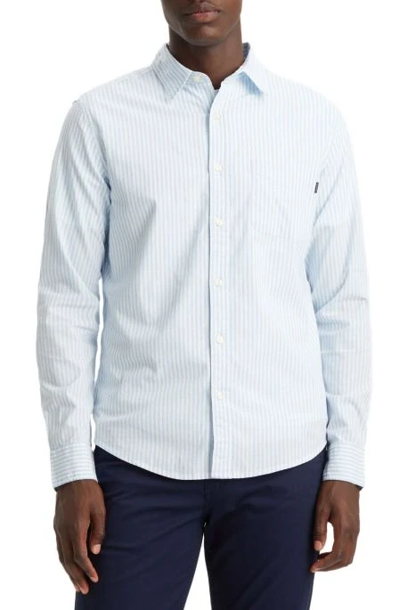 Chemise Dockers pour homme, poche poitrine, chemise rayée bleu ciel / blanc, manches longues, coupe slim.