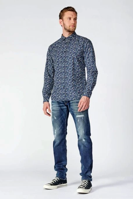 Chemise Temps des Cerises pour homme, manches longues, coupe slim, motif fleuri,
