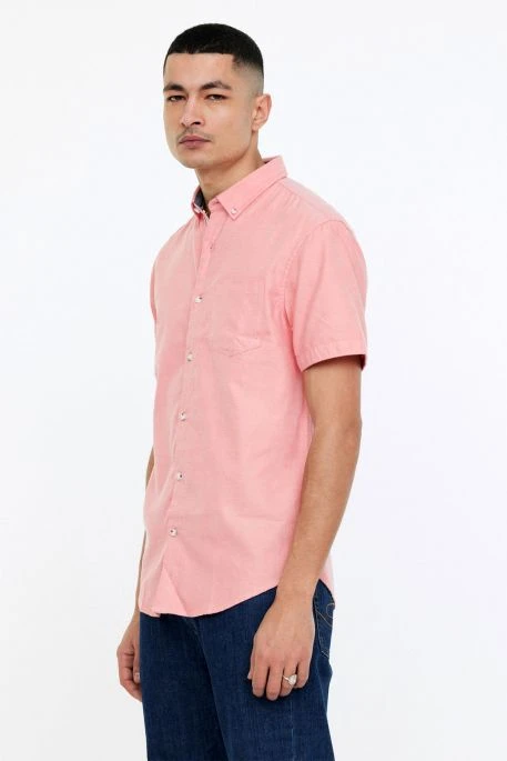 Chemise Lee Cooper pour homme, chemise Lee Cooper manches courtes, détails contrastés, avec poche poitrine et broderie Lee Cooper