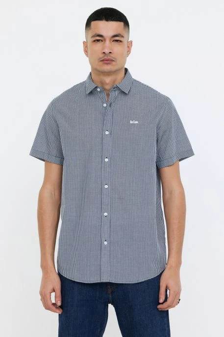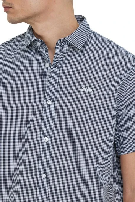 Chemise Lee Cooper pour homme, chemiseen coton vichy manches courtes broderie poitrine