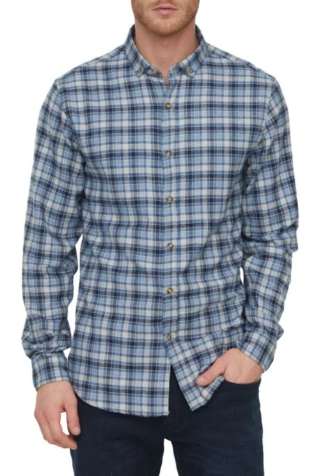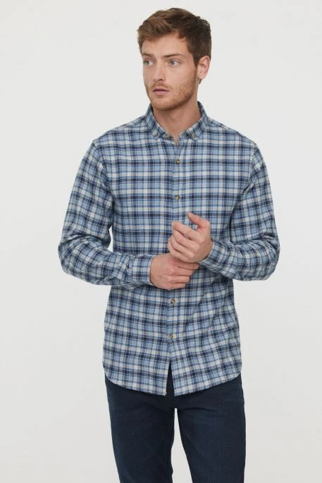Chemise Lee Cooper pour homme, chemise à carreaux confectionée en flanelle de coton, broderie Lee Cooper sur la poitrine, col boutonné, coupe confort