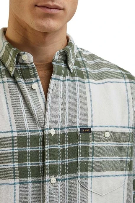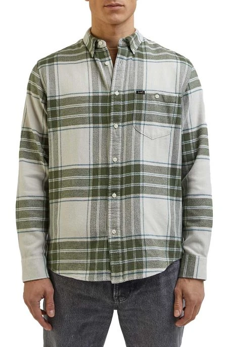 Chemise Lee pour homme, chemise manches longues à carreaux de coupe confort, vous avez un pli d’aisance à l’arrière, et un ourlet arrondi, poche poitrine, col boutonné,