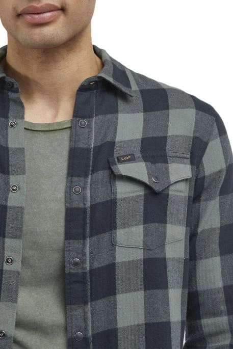 Chemise pour homme de marque Lee, chemise à carreaux manches longues, 2 poches poitrine boutonnées, logo Lee; fermeture boutonnée par boutons pressions, le tissu est en flanelle à carreaux