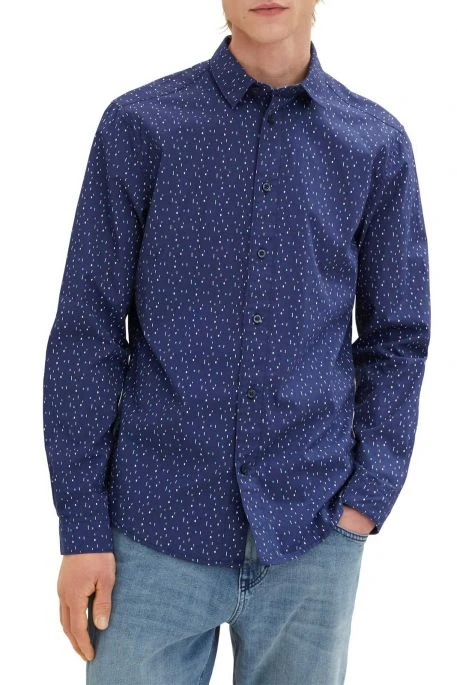 Chemise pour homme de marque Tom Tailor, chemise manches longues avec col Kent et patte de boutonnage, cette chemise est confectionnée en coton doux et respirant avec un imprimé intégral et une coupe régulière.