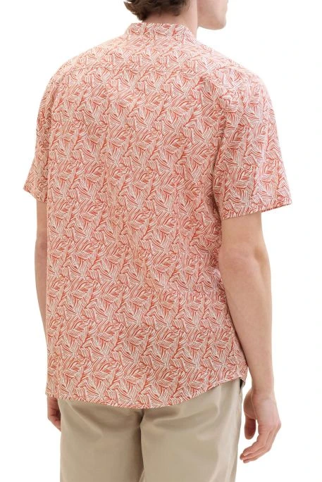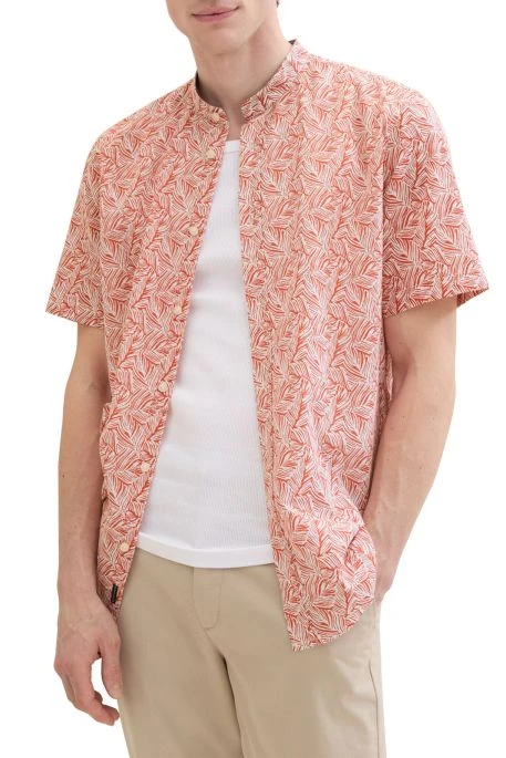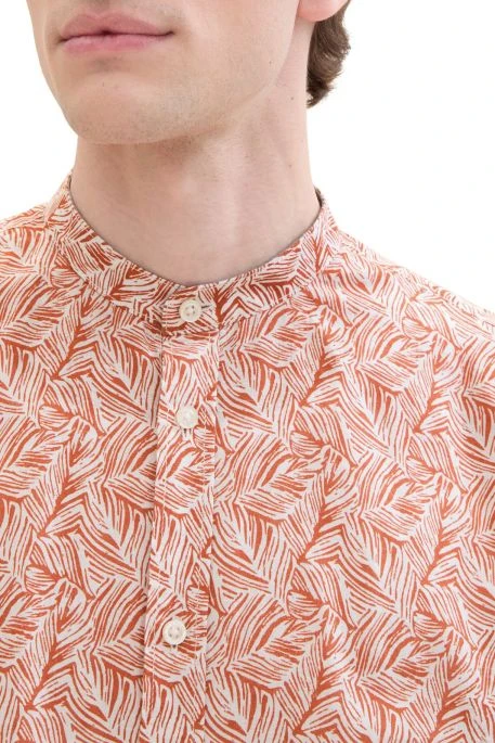 Chemise Tom Tailor pour homme, chemise manches courtes, chemise avec col mao, chemise légère confectionnée en mélange lin coton pour un confort optimal.