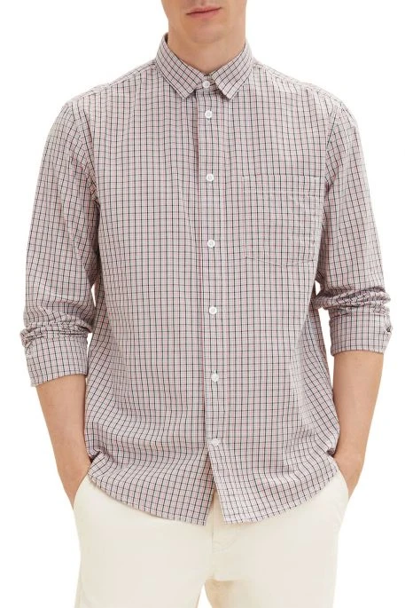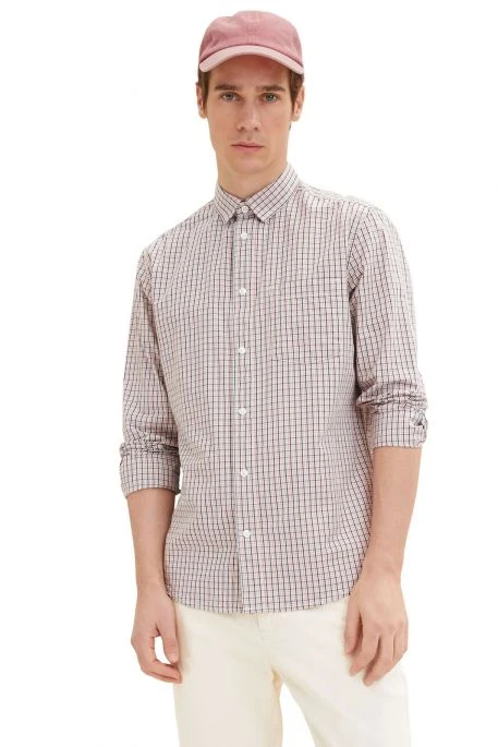 Chemise pour homme de marque Tom Tailor, chemise à manches longues avec un col Kent en popeline, chemise à carreaux avec une poche plaquée sur la poitrine, coupe classique