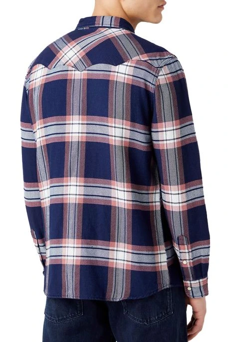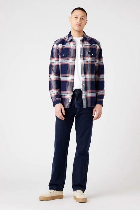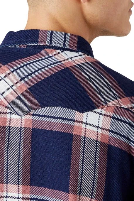 Chemise Wrangler pour homme, chemise à carreaux pour homme avec deux poches poitrine, fermeture par bouton pression; étiquette Wrangler sur la poche poitrine,