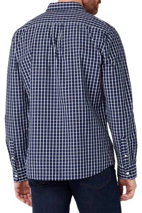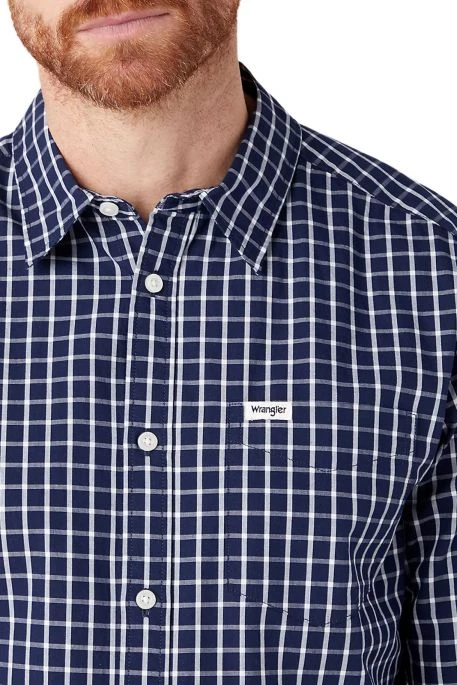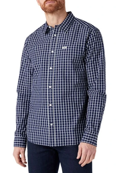 Chemise Wrangler pour homme, chemise manches longues avec coupe regular confortable, dotĂ©e d’une poche poitrine, col pointu et poignets boutonnĂ©s.