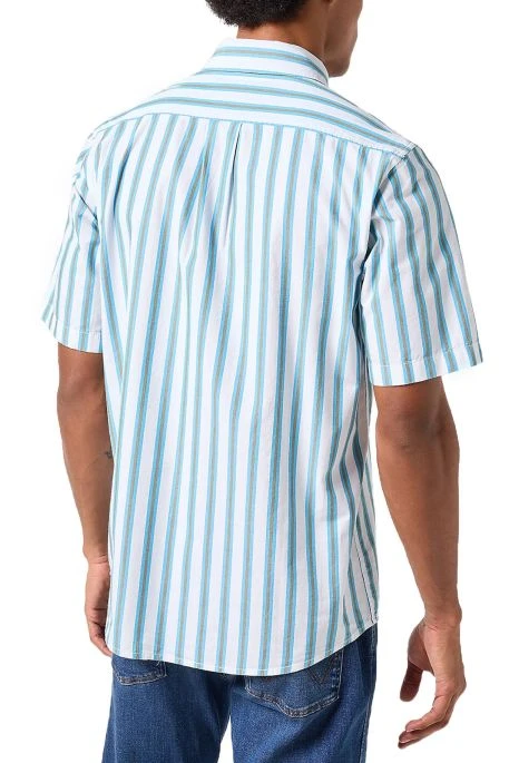 Chemise Wrangler pour homme, cette chemise Wrangler arbore des rayures bleu clair, une poche poitrine et logo Wrangler, une coupe regular, un ourlet arrondi et un pli d’aisance dans le dos.