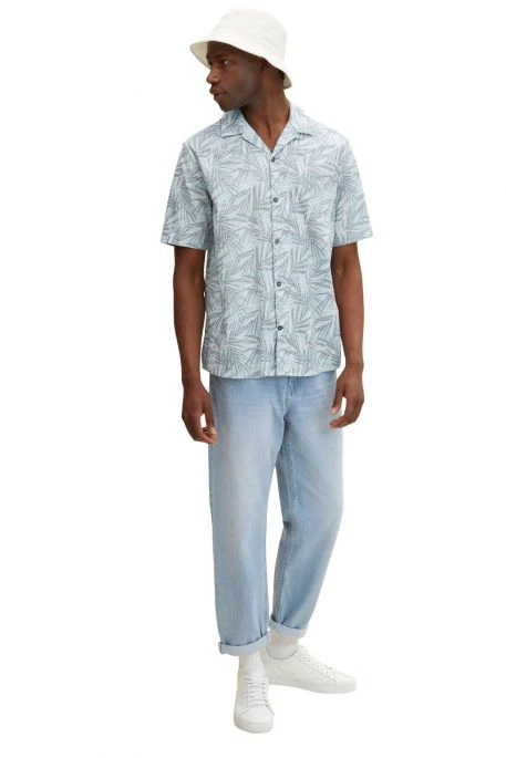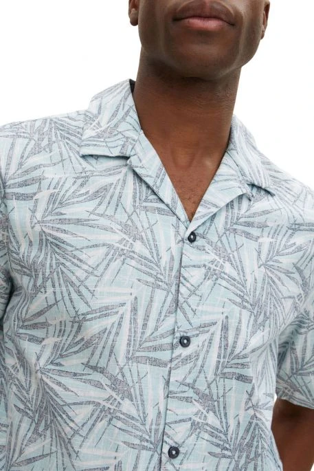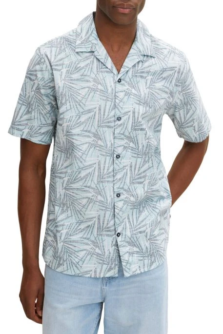 Chemisette Tom Tailor pour homme. Chemisette Ă manches courtes avec col Ă revers et patte de boutonnage. Motifs feuillage.
