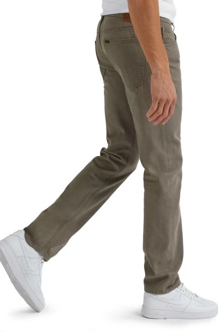 Jean Lee Daren Zip Fly pour homme. Jean de coupe droite, ajusté, légèrement resserré aux chevilles. Taille intermédiaire, 5 poches, braguette zippée. Ce pantalon est fabriqué dans une toile denim en coton.