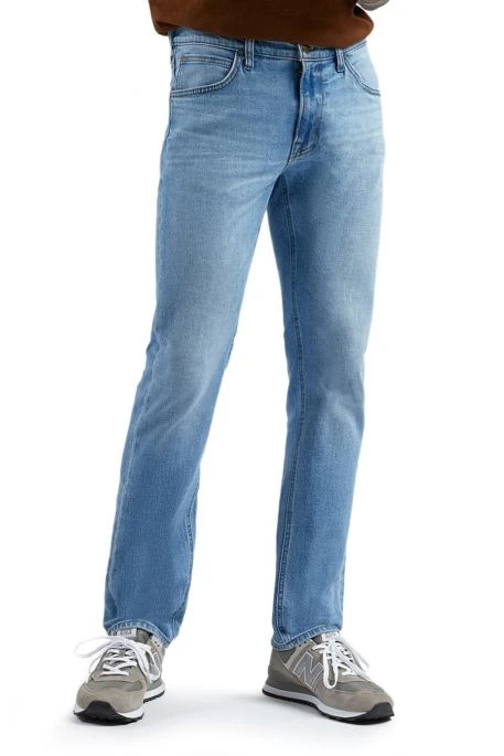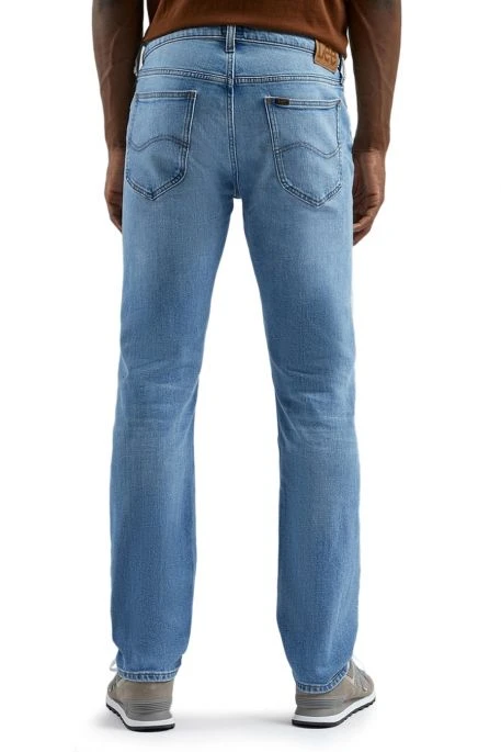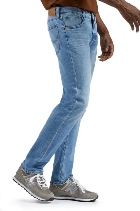 Jean Lee Daren Zip Fly pour homme. Jean de coupe droite, ajusté, légèrement resserré aux chevilles. Taille intermédiaire, 5 poches, braguette zippée. Ce jean est fabriqué dans une toile denim en coton.