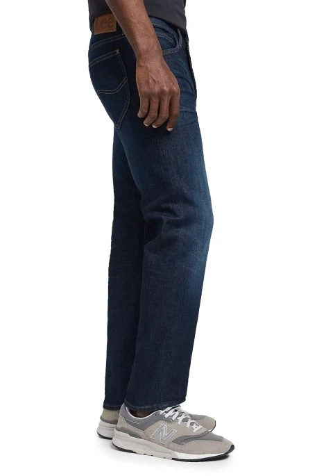 Jean Lee Daren Zip Fly pour homme. Jean de coupe droite, ajusté, légèrement resserré aux chevilles. Taille intermédiaire, 5 poches, braguette zippée. Ce jean est fabriqué dans une toile denim en coton.