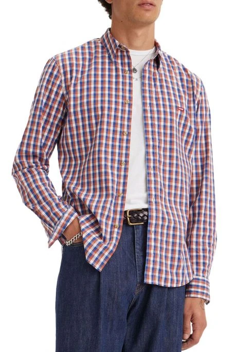 Chemise Levi’s® Battery Housemark pour homme. Chemise à carreaux de coupe ajustée et slim, manches longues, col à pointe. Logo Batwing Levi’s® discret sur la poitrine.