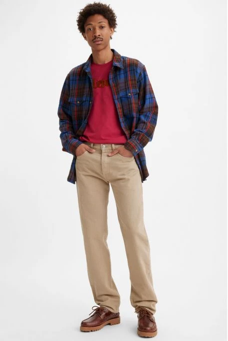 Jean Levi’s® 501® Original pour homme. Jean de coupe droite aux hanches et jambes droites avec braguette boutons emblématique de la marque. Denim 5 poches.