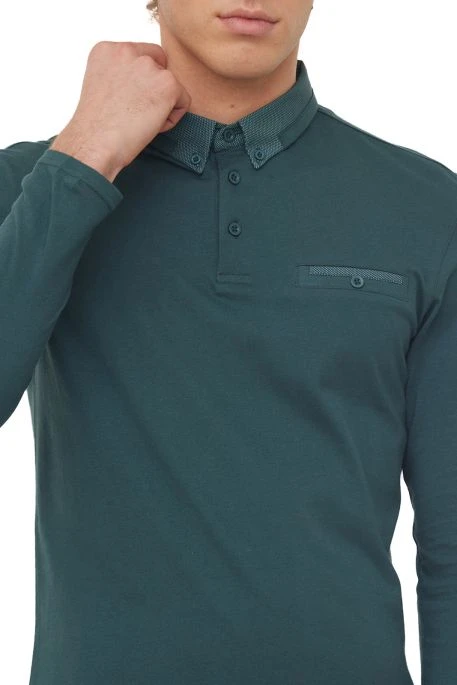 Polo Lee Cooper pour homme, manches longues, poche poitrine, col boutonnée, polo en jersey