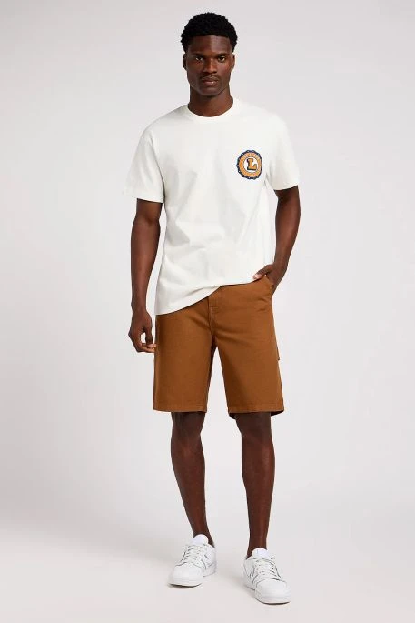 Short pour homme Lee coupe carpenter. Short coupe décontractée avec entrejambe bas, large aux cuisses et braguette zippée. Fabriqué dans un coton résistant, il se compose d’une boucle à maretau et de poches sur le côté directement inspiré des vêtements de travail.