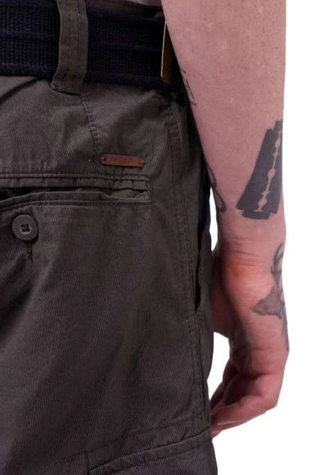 Short Teddy Smith Sytro 3 pour homme. Short à fines rayures de coupe droite, fermeture par bouton, braguette zippée. Ceinture en toile avec boucle en métal. Ce modèle possède 6 poches dont 2 latérales, 2 plaquées sur les côtés et 2 arrières. La ceinture en toile est amovible.