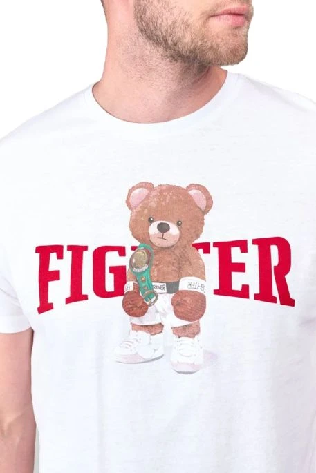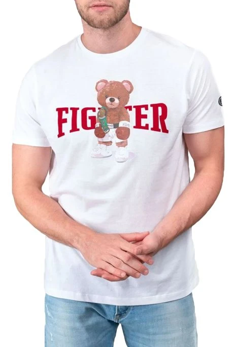 Tee Shirt Le Temps des Cerises Chedar pour homme, tee shirt manches courtes avec encolure ronde et imprimé Nounours boxeur. écusson TDC sur la manche gauche
