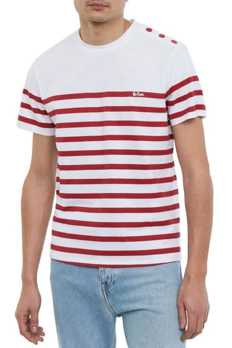 Tee Shirt Lee Cooper pour homme, tee shirt avec encolure ronde, manches courtes, 3 boutons décortaifs sur l’épaule, Tee shirt à l’esprit marin, coupe regular