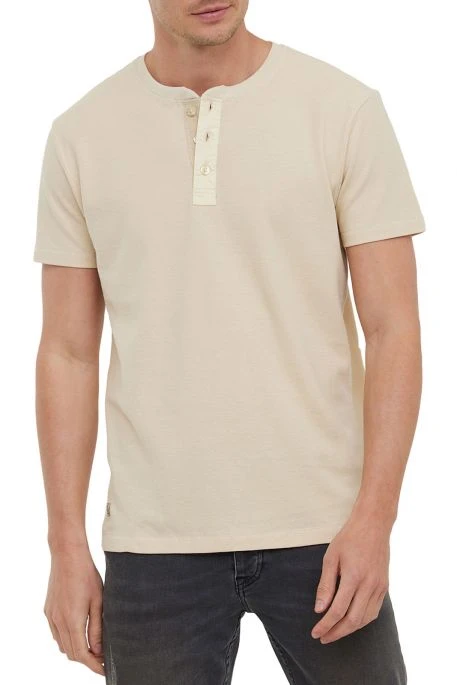 Tee-shirt Lee Cooper Azzo pour homme. T-shirt à manches courtes, coupe slim, col tunisien avec patte de boutonnage à 3 boutons. Tissu en maille piquée de coton organique.