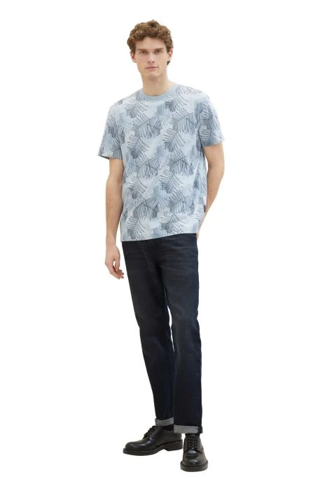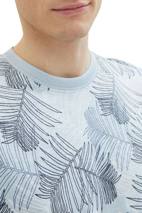 T-shirt Tom Tailor pour homme. Tee shirt manches courtes col rond imprimé feuillage, coupe droite.