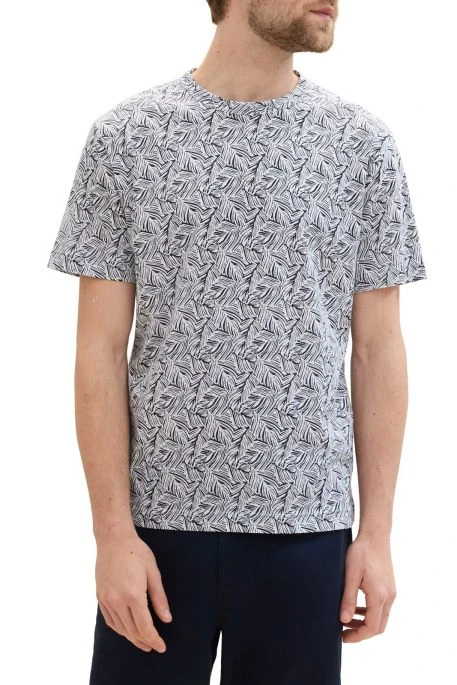 Tee shirt pour homme Tom Tailor. T-shirt manches courtes, col rond, imprimé feuillage, coupe classique standard.